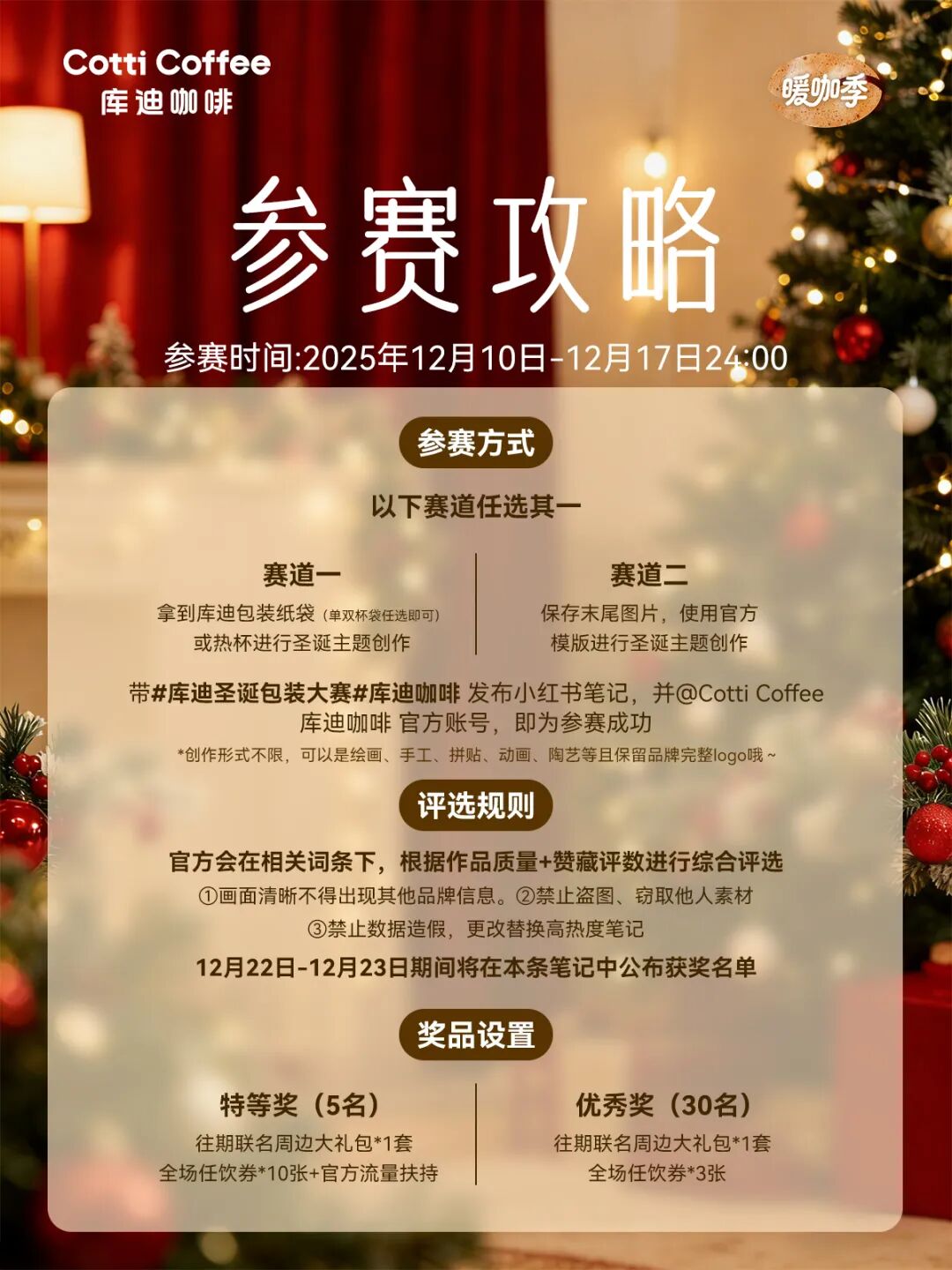 带#库迪圣诞包装大赛#库迪咖啡 发布🍠小红书笔记,并@Cotti Coffee 库迪咖啡 官方账号,即为参赛成功