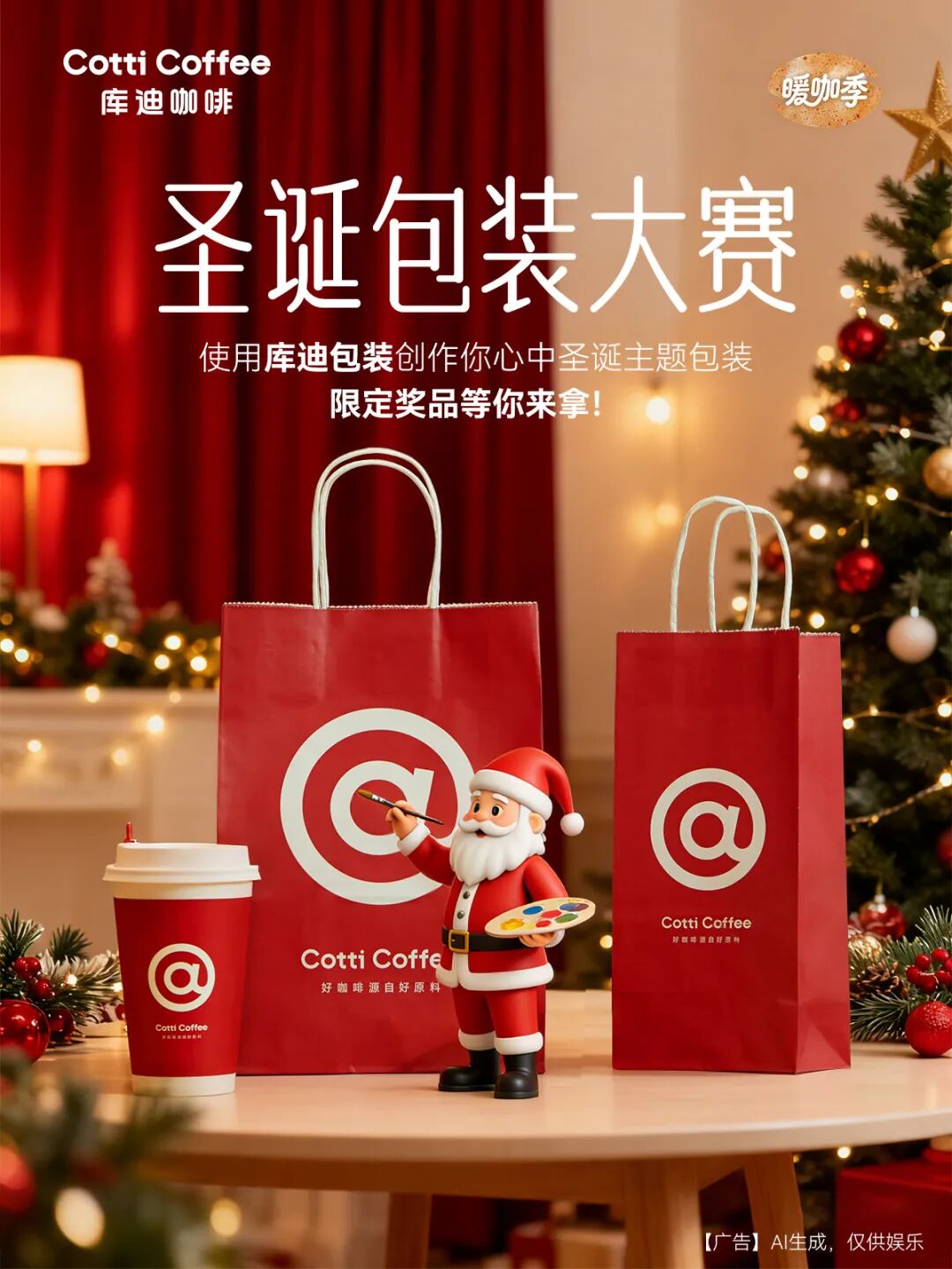 赛道1:拿到库迪包装纸袋(单双杯带任选即可)或热杯进行圣诞主题创作