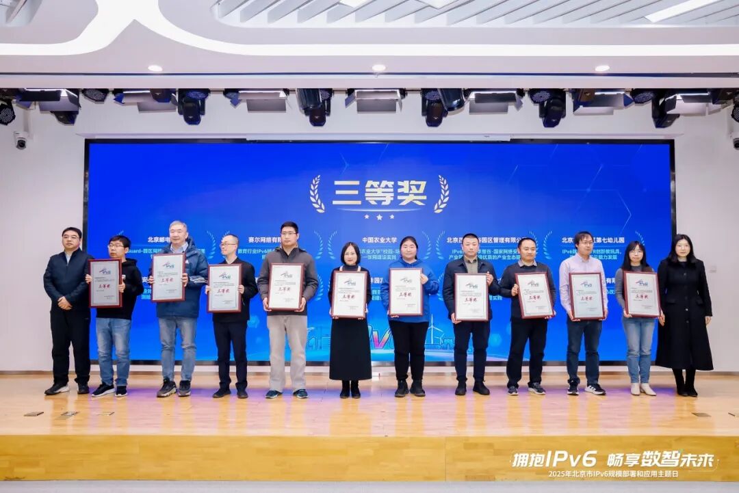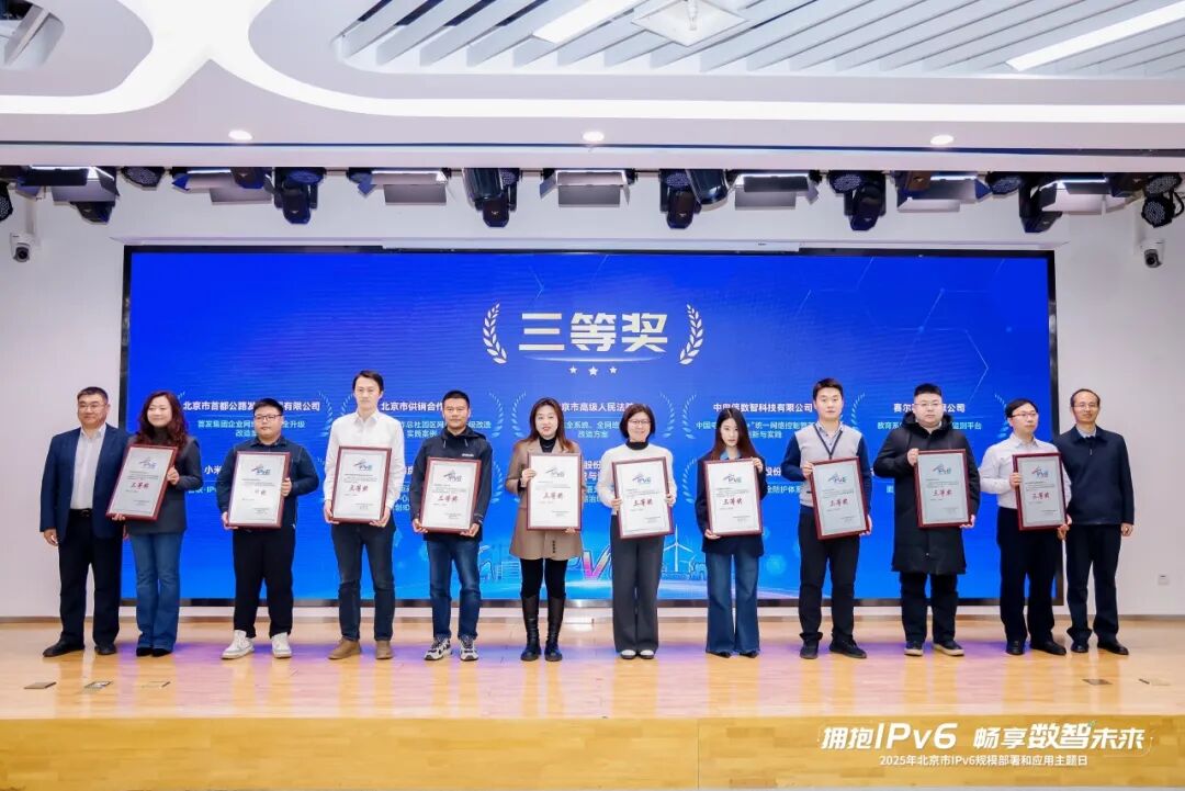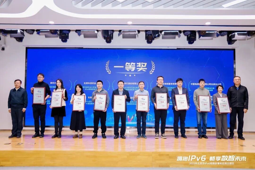 其中,区财政局“电子票据管理平台IPv4&IPv6双栈改造适配”、抖音集团“数据中心网络及应用基础设施IPv6-Only部署实践”等5个项目获评一等奖,占全市一等奖总数的50%;清华大学+中关村实验室“全球活跃IPv6地址探测方法体系及系统”等3个项目获评二等奖,占全市30%;赛尔网络有限公司“教育行业IPv6域名智能权威解析解决方案”等11个项目获评三等奖,占全市55%;区数据局“海淀区政务外网IPv6规模部署与深度应用实践”等9个项目获评优胜奖,占全市45%。这些获奖案例覆盖政务、教育、互联网、产业服务等多个领域,充分展现了海淀区IPv6规模部署和应用的广度与深度。