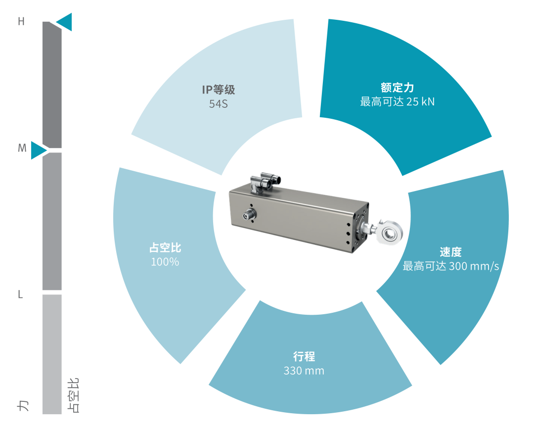 该产品系列尺寸紧凑且实现高功率密度。无论应用需求如何,伊维莱CEMC电缸都可提供紧凑而动态的解决方案,凭借高可靠性及高效率提供卓越的性能和使用价值,同时降低产品全生命周期内的成本。通过使用反转式滚柱丝杠,这些驱动器可以达到最短的缩回长度,同时提供很高的输出功率。该系列产品是在中等负载、高占空比应用中替换液压系统的理想解决方案。