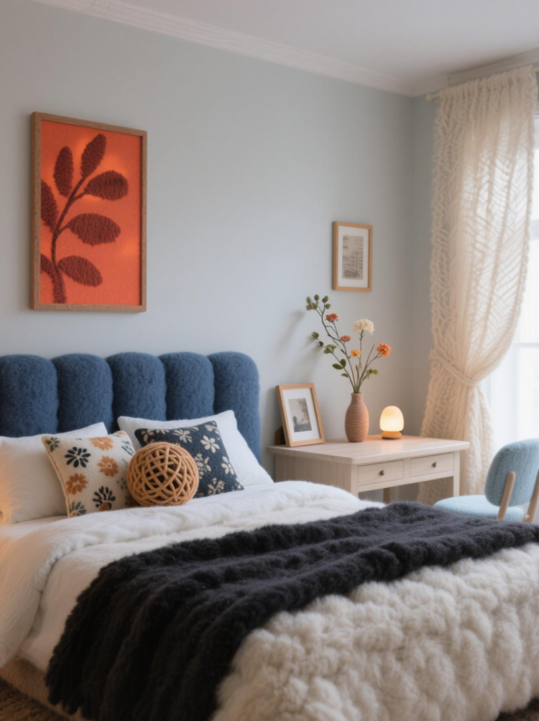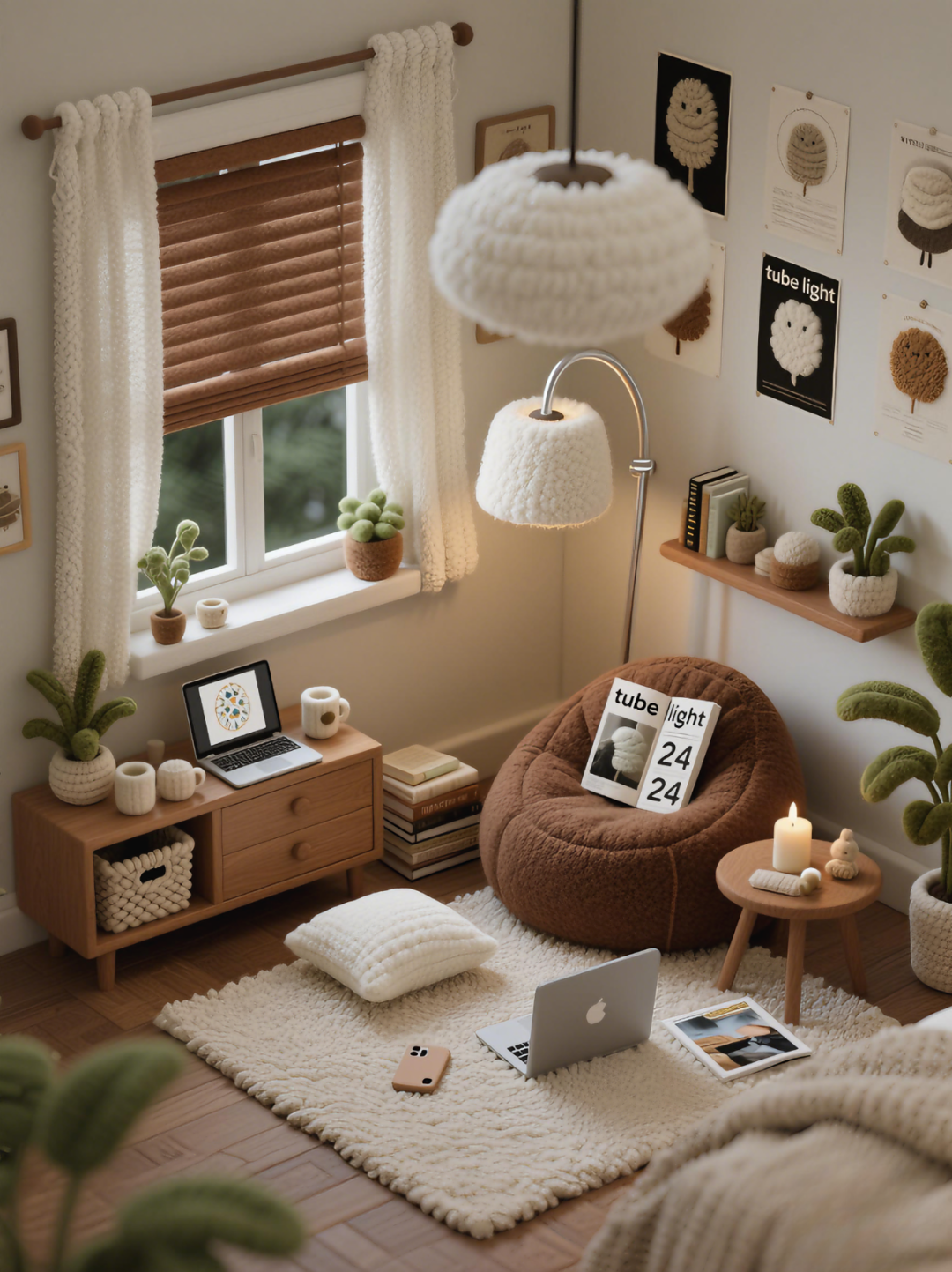 是堆满抱枕的沙发,铺着厚地毯的窗边