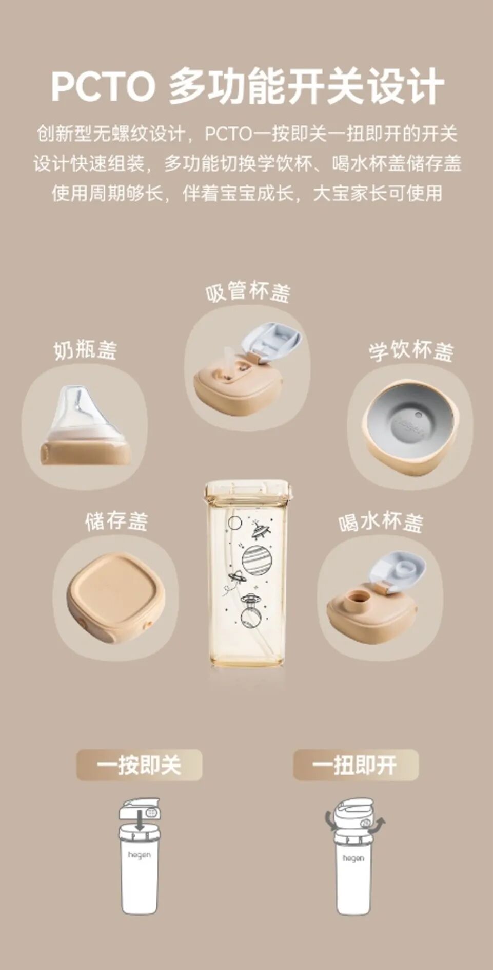 Hegen海格恩太空吸管杯柔韧扁圆吸嘴