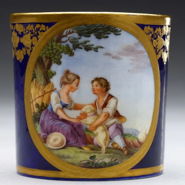 法国王室汇集顶尖艺术家、化学家、雕刻家及金工的各方所长,共同创造出的“塞夫勒深蓝(一种独具特色的釉下彩)” 及 “鎏金(用纯金研磨后混合胶水的颜料在瓷器上描绘装饰) ”,亦是塞夫勒瓷器声名远播、价值不菲的原因。