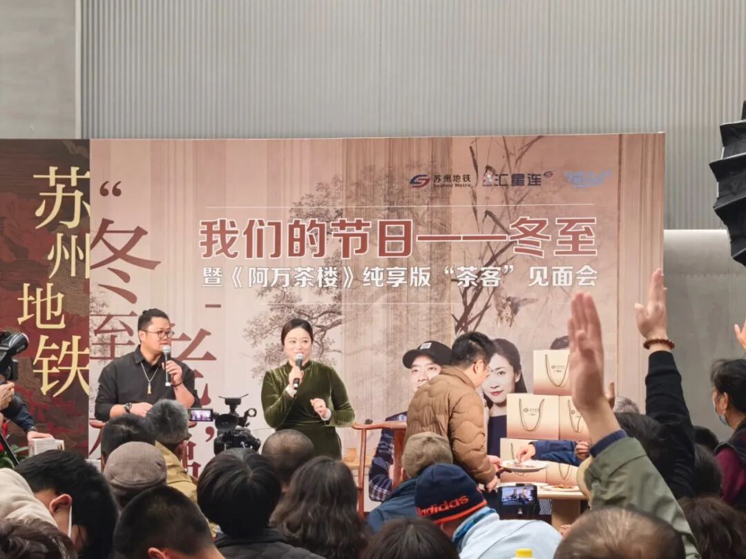 下午14:00,苏州地铁联合广电104.8《阿万茶楼》重磅推出“冬至老友局”线下粉丝见面会,活动融入苏州传统民俗元素,同步开启冬酿酒、冬至卤菜套餐预售通道,铁豹救援队为本次活动提供了强有力的支援保障,最终以“浒关好市”特色产品抽奖环节圆满收官。市民们在地铁场景中提前解锁“苏州年”的地道风味,既强化了粉丝与品牌的情感联结,更以“民俗+消费”的融合形式,让传统文化在现代公共空间中焕发新生,进一步丰富了地铁商业的体验维度。