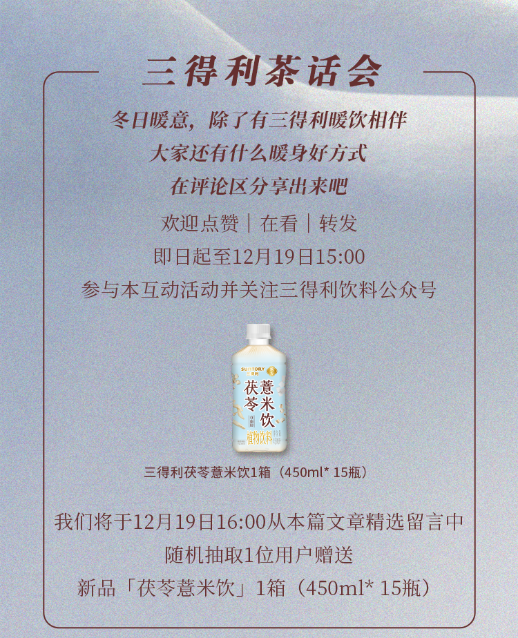 文章内容来源于公众号:三得利饮料,点此可查看原文,内容版权归相关企业所有,本网站仅供交流学习。若涉及版权问题或存在侵权情况,请及时与我们联系,我们将第一时间进行删除处理。