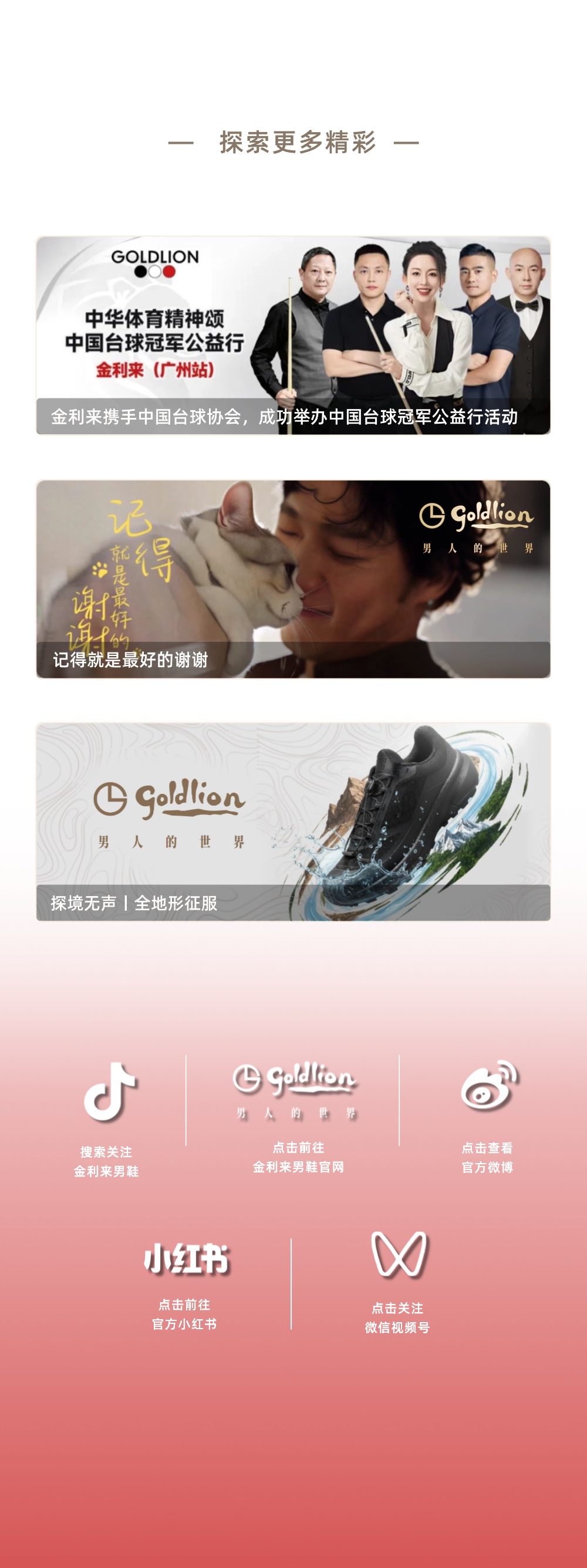 文章内容来源于公众号:金利来男鞋,点此可查看原文,内容版权归相关企业所有,本网站仅供交流学习。若涉及版权问题或存在侵权情况,请及时与我们联系,我们将第一时间进行删除处理。