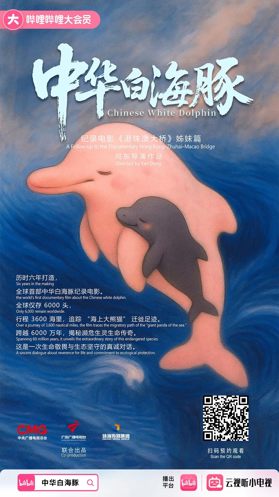 12月12日,由中央广播电视总台、广东广播电视台和珠海传媒集团联合出品的纪录电影《中华白海豚》正式上映,这也是全球首部以中华白海豚为主题的纪录电影。