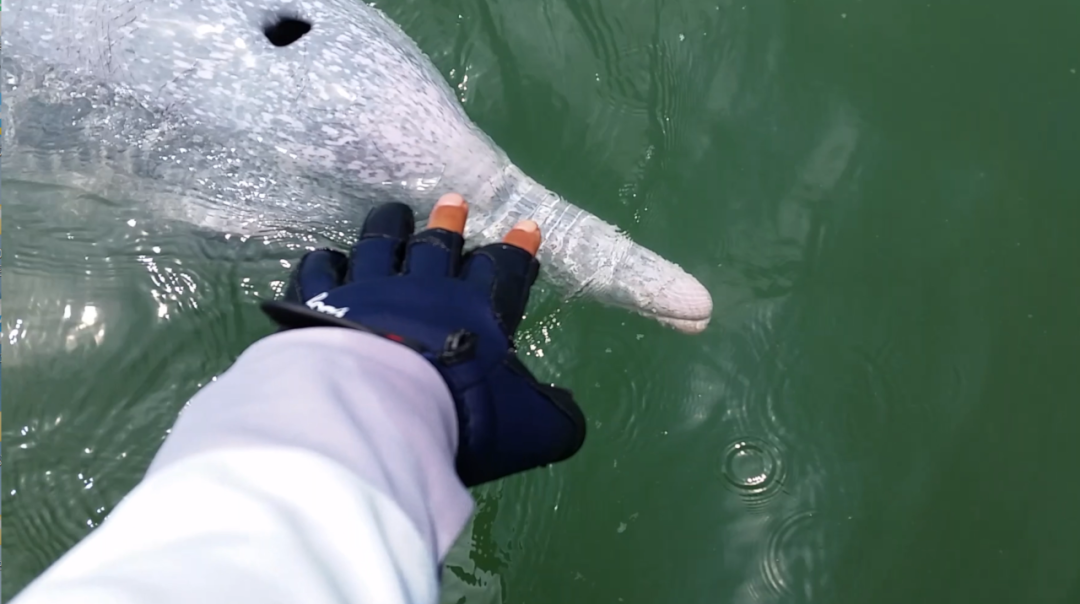 有观众好奇,跨地域拍摄,跨物种沟通,这么难的拍摄,是怎么坚持下来的?导演沈正海还记得第一次见到白海豚时的触动:“当白海豚在船边看着你,那种对望足以让心灵有所触动,支撑着我们一次又一次出发。”