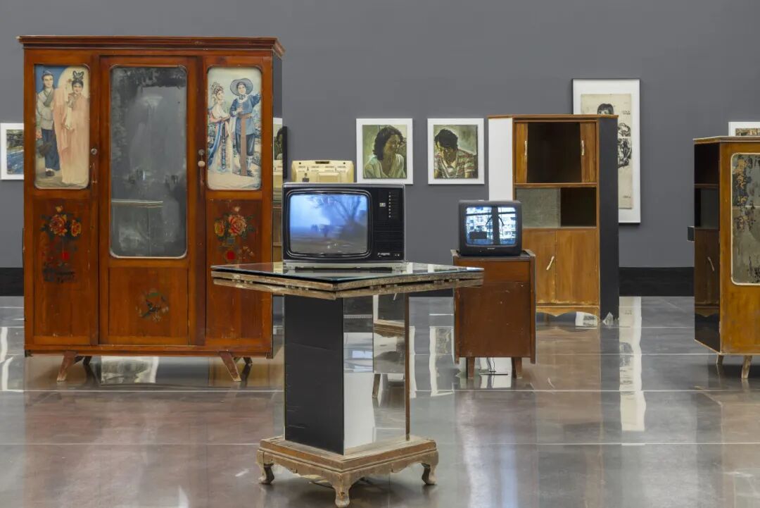 展览中与《香河》并置,且形成强烈对照的,是装置作品《哺乳期》。它由八九十年代香河地区典型的旧家具与旧电视机构成,家具表面覆以镜面或玻璃,观众的身影在碎裂的反射中不断被切割、重组;电视屏幕中则循环播放着艺术家于2000年初返乡时拍下的原始生活记录。一边是未经修饰的家庭影像与生活物件,一边是由专业演员演绎的诗化叙事,两者共同构成了一次关于“何为真实”的对照、映照与追问。