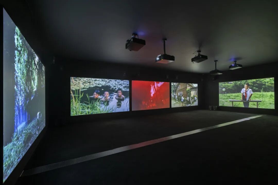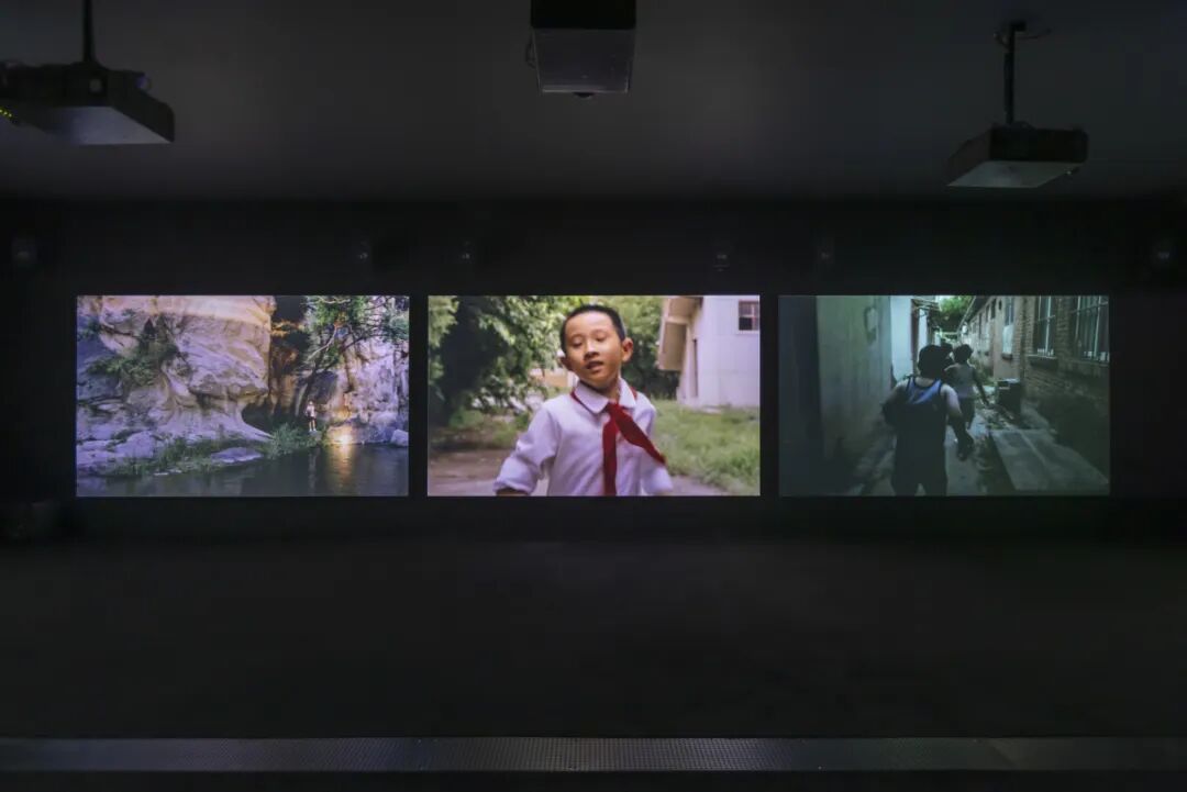 因此,在UCCA“香河”展的入口,他以16毫米彩色胶片拍摄的五频影像装置《少年少年》,重新召回那些闪光的片刻:奔跑、练拳、候车、穿行玉米地的少年们,像生活在一个不会结束的夏日。胶片的颗粒轻轻跳动,将个人的童年体验化为一种可触的时间质地,也成为理解“香河”这部影像史诗最初,也是最柔软的入口。