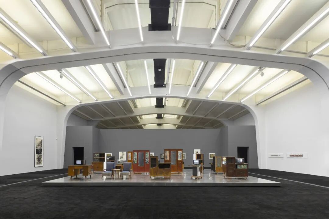 这种“断章取义”的方法,也可以成为走入“香河”展的观看方式。在UCCA这座“时间错位的舞台剧”中,观众可以从《少年少年》出发,走进懵懂却带着惆怅的少年时刻;随后穿过装置《哺乳期》,在上世纪八九十年代香河常见的旧家具、旧家电与旧影像之间穿梭,偶尔在玻璃的反射中撞见被切割、叠映的自身。途中,《在颐和园》《县长县长》等单频影像如散落的脚注,将记忆的边界延展至城市与想象中的“地方志”……最终,观众抵达《香河》:十五块屏幕在九个彼此嵌套、相互连通的空间内构成一座记忆迷宫。在自由地行走、停留、折返与前后倒置中,每个人都以自身的路径与节奏完成一场隐秘的蒙太奇剪辑,使“香河”在不同观众眼中生长为截然不同的版本。