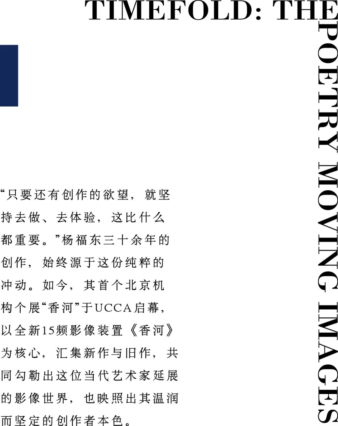 这些年,“21世纪中国最重要的当代艺术家之一”“杨福东式电影”等标签不断被加在他身上,他却显得有些不自在:“这些头衔太可怕了,我会觉得承受不起。”对他而言,比这些称号更重要的,是一件极其简单的事:“只要日常生活中还有创作的欲望,还有想表达的东西,就坚持去做、坚持去体验,这比什么都重要。”