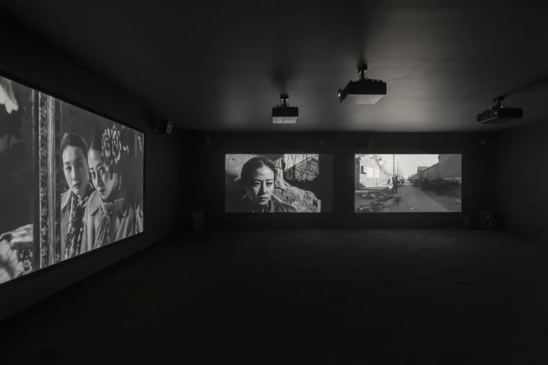 UCCA尤伦斯当代艺术中心呈现杨福东首个北京机构个展“香河”,以十五频黑白影像装置《香河》为核心,汇集六部全新影像、一幅大型绘画装置、一组家具影像装置及多件早期绘画、影像与文献。展场被构筑为“迷宫”“城楼”“广场”般的层层结构,黑白灰的光影在多重动线中折返、错位,仿佛一座关于时间与记忆的剧场。顺着这些动线一路向上,在大展厅二楼。