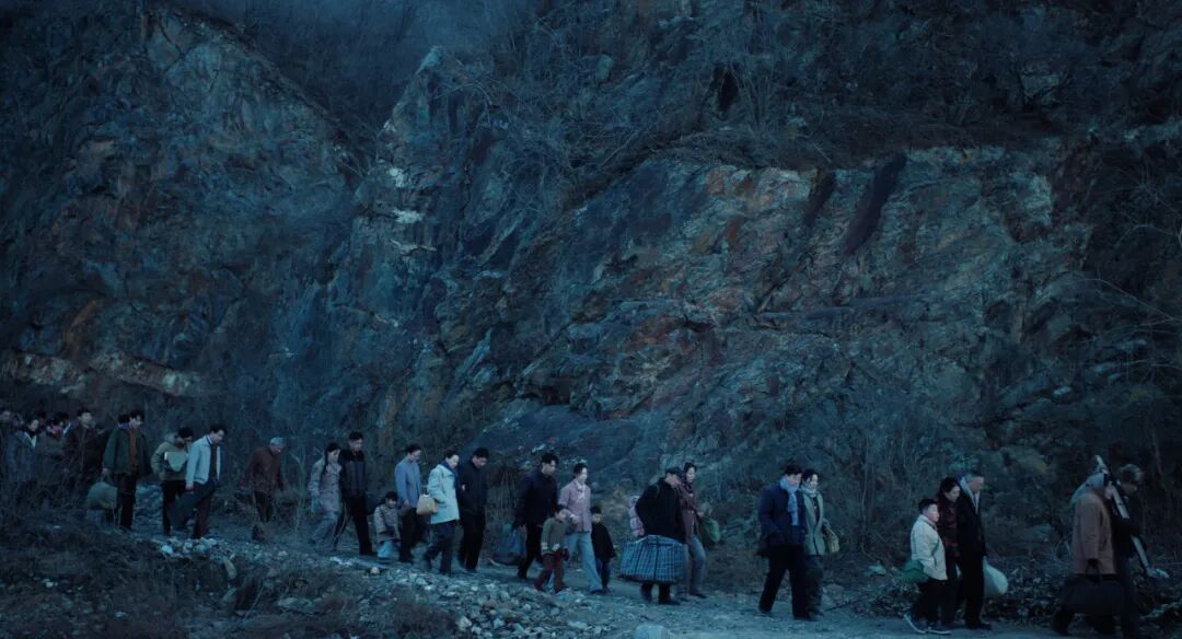 呈现一个时间与地点不明的集体迁徙场景。
