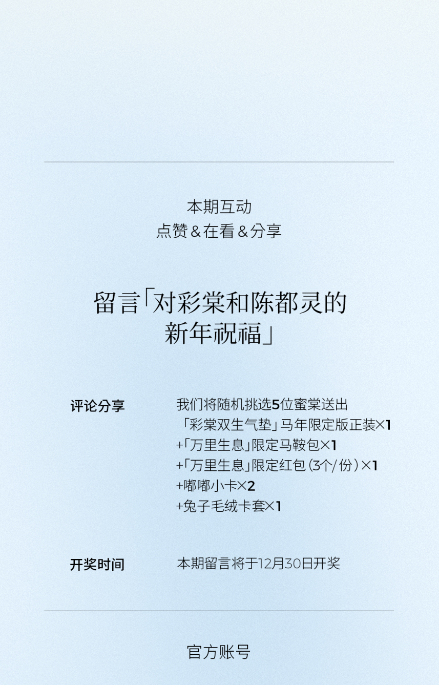 摘要:彩棠「万里生息」新年限定礼盒\x0d\x0a携手品牌灵动代言人陈都灵\x0d\x0a共启一场奔赴辽阔的旅程\x0d\x0a| 文末互动好礼