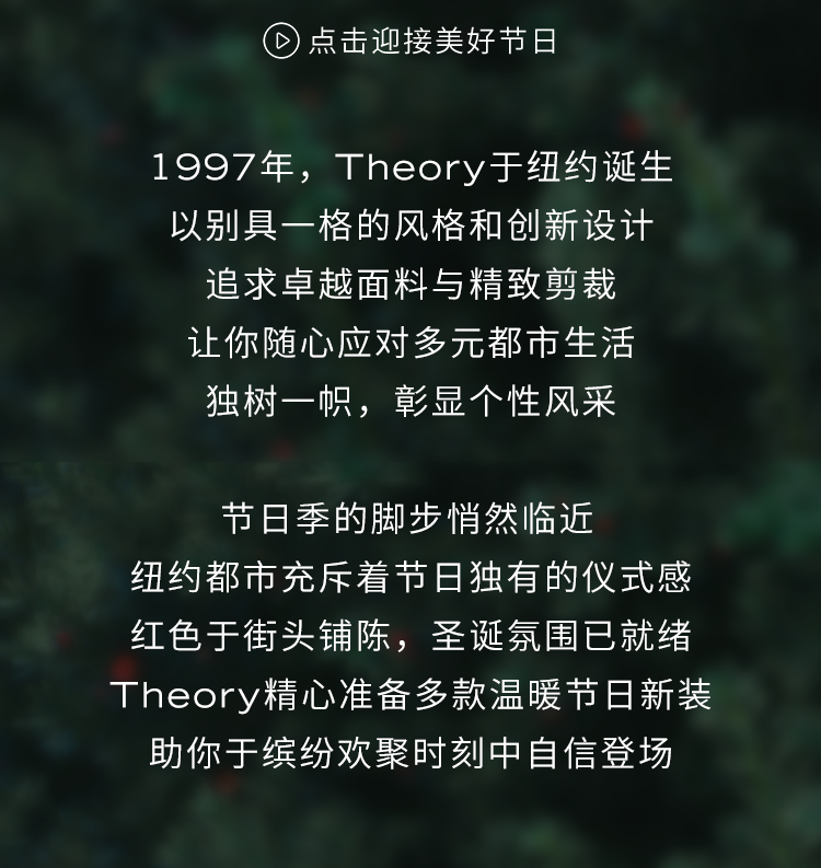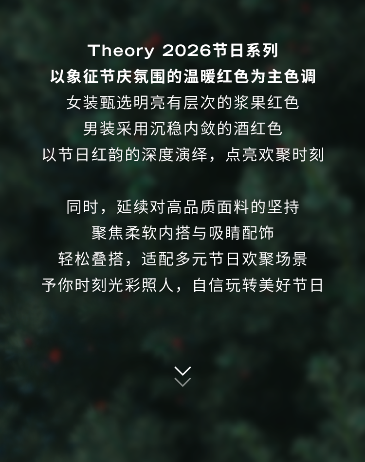 摘要:探索Theory 2026节日系列新品,以红色系衣装,演绎时髦温暖的圣诞新装,予你闪耀每个节日的相聚时刻