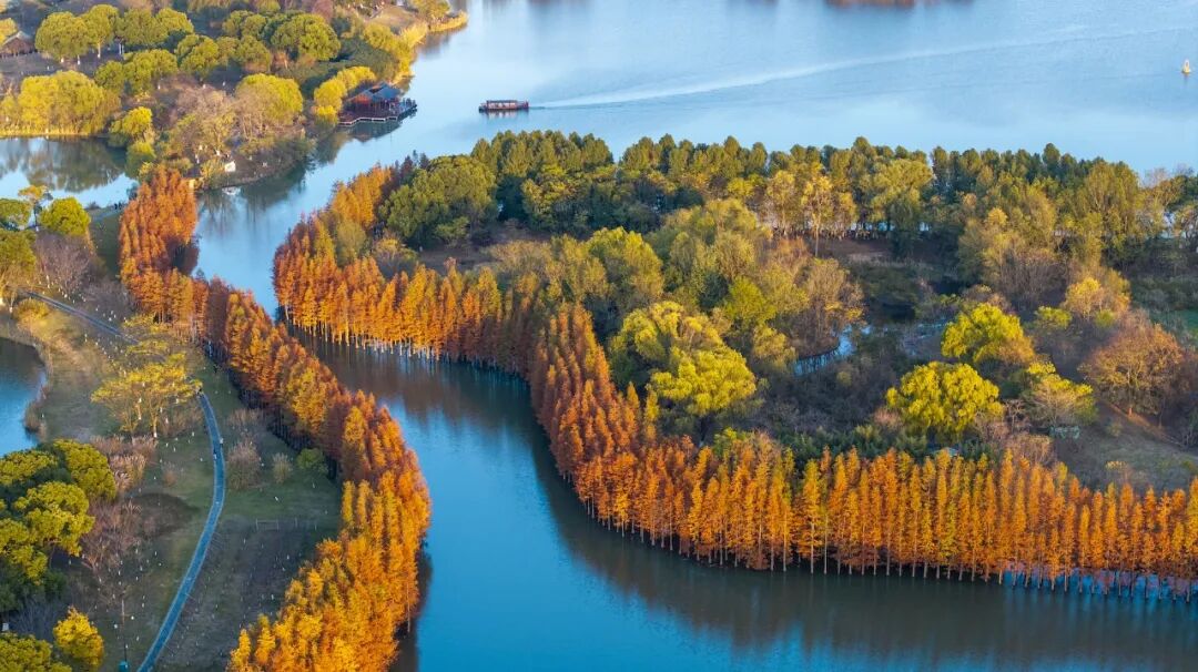 ✅无人机视角:如果有条件,航拍能展现水杉林整体的色彩与形态,特别是湿地场景,效果震撼。