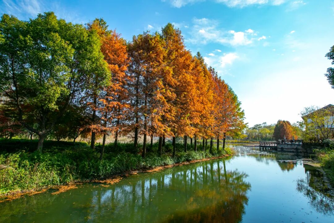 一排排水杉将整个斜塘河包裹起来