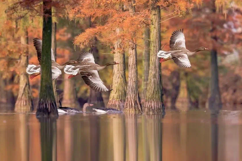 红杉映水、候鸟齐飞