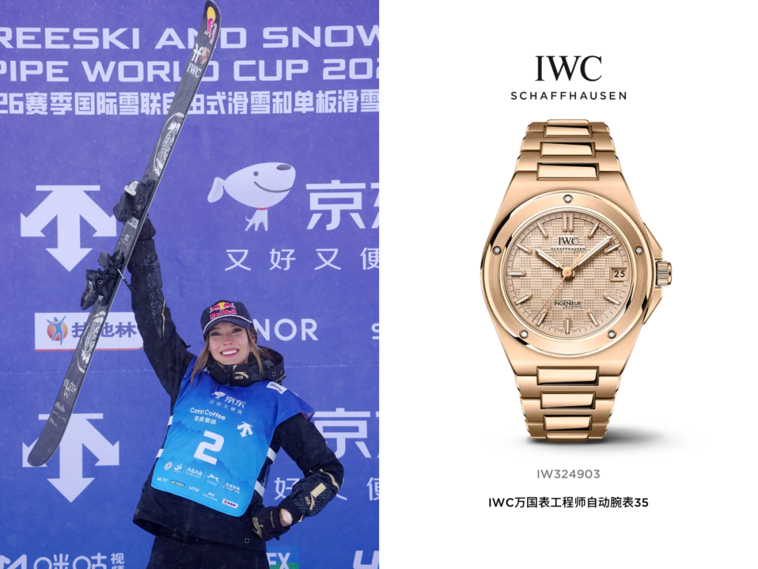 国际雪联自由式滑雪U型场地世界杯云顶站赛事在河北张家口落幕,中国选手谷爱凌以亮眼表现摘得女子项目桂冠,实现该场地世界杯三连冠,同时斩获职业生涯第19枚世界杯金牌。谷爱凌佩戴IWC万国表工程师自动腕表35(型号:IW324903)登上冠军领奖台,定格荣耀瞬间。