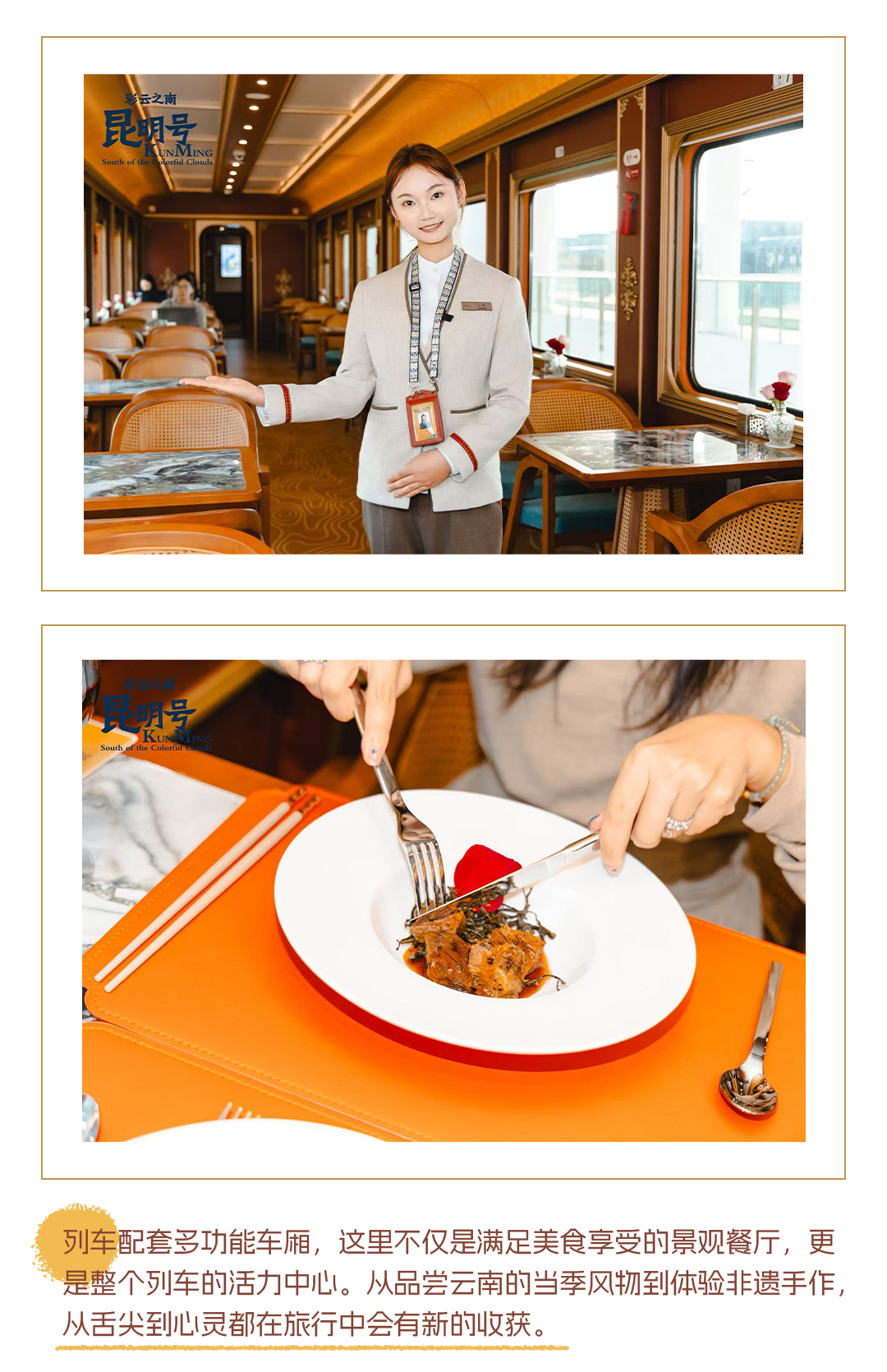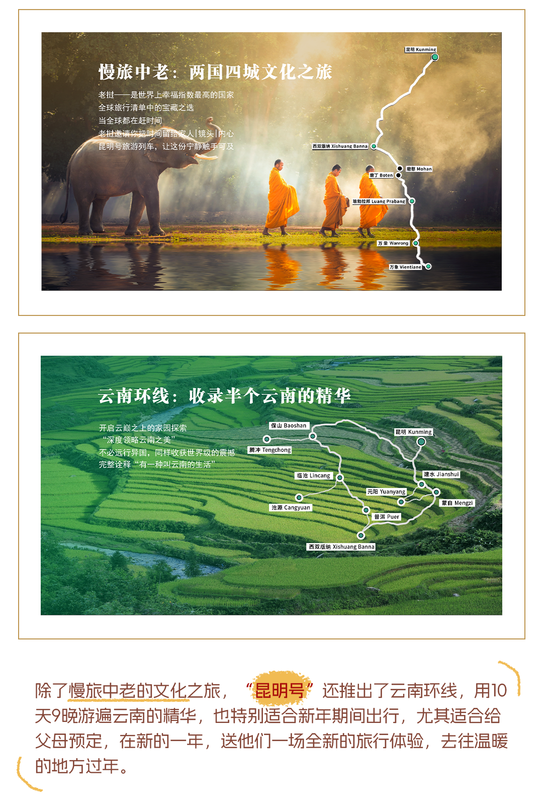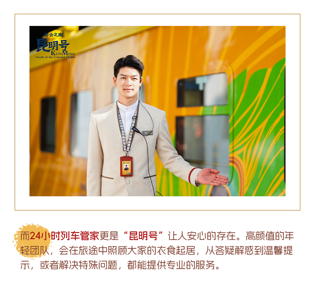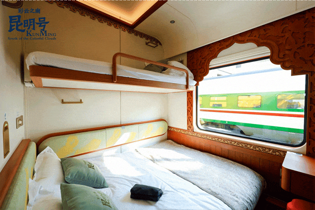 坐着列车,跟随着沿路风景穿越过国境线,开启一段跨国旅程是怎样一种体验?昆明文旅斥资4000万打造跨境文旅标杆项目——“昆明号”,就直接把星级酒店标准的客房搬到了铁轨之上,为旅客带来了高品质,超舒适,高附加值的跨境旅行体验。作为“全国首趟舒适型跨国旅游列车”,“昆明号”用一张火车票串联起昆明——西双版纳——琅勃拉邦——万荣——万象两国三城,带来了极具差异化的旅行时光。