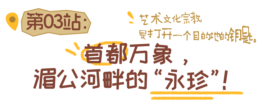 宽阔的河床上,裸露的沙洲被染成玫瑰金色,孩子们在奔跑玩耍,情侣并肩坐着,沿岸的集市,餐饮还有儿童乐园虽然人不多,但是气氛和谐热闹。河水潺潺,不分国界地流淌着。此刻的万象,既有着首都的端庄,又弥漫着一种河边小镇的闲适。总统府与早市相邻,僧侣与上班族可以一起在街边小摊嗦粉。这种混杂,构成了万象真实的魅力。