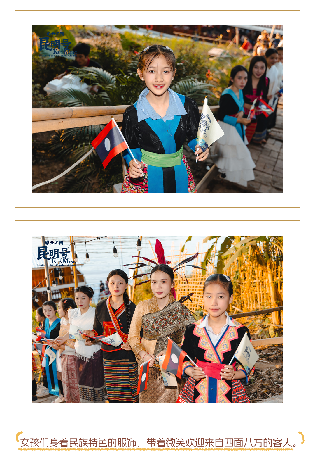 在琅勃拉邦的行程中,最浓墨重彩的要数湄公河游船晚宴。“昆明号”的伙伴早早地在湄公河沿岸等待,还特别安排了当地的小姑娘沿途欢迎大家的到来。