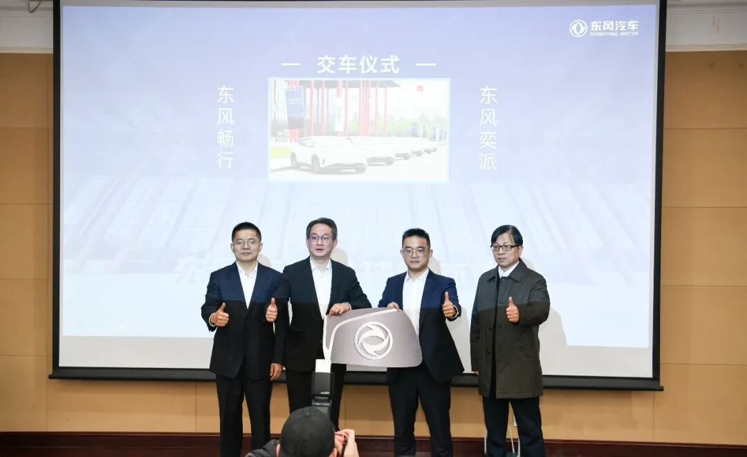 活动现场,奕派科技与云马未来汽车服务(武汉)有限公司、武汉市金蜜蜂汽车服务有限公司、武汉风韵出行信息科技有限公司签署东风独立北斗车型东风风神SKY EV01销售协议,并向东风畅行科技有限公司交付首批新车。