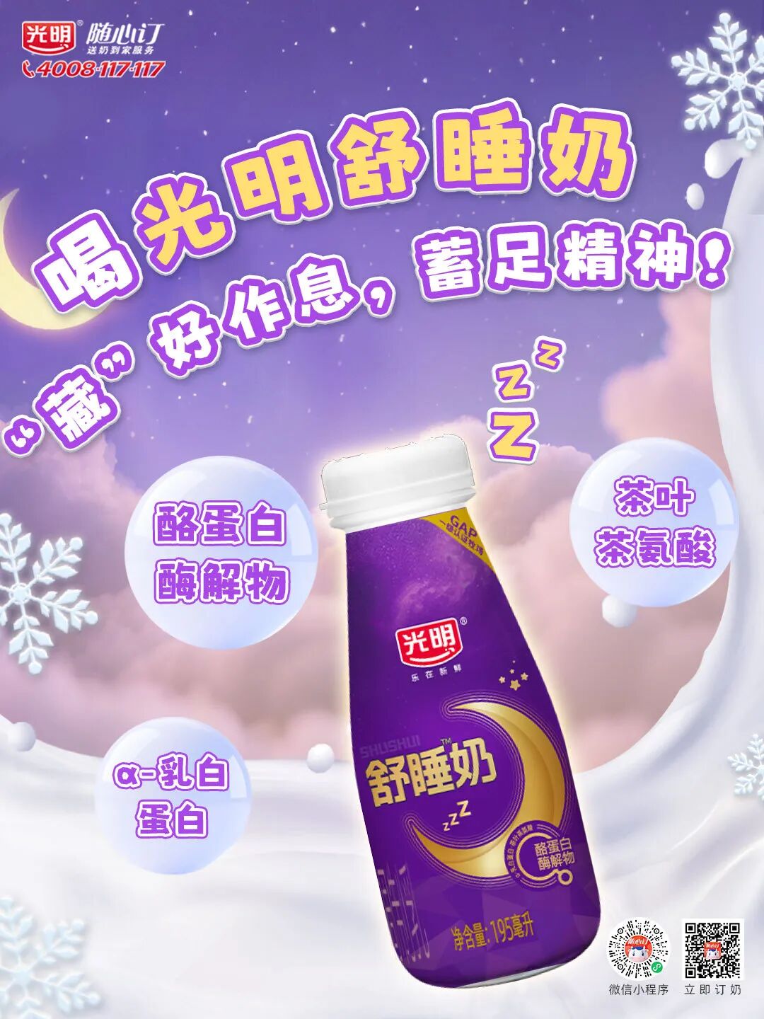 一杯光明舒睡奶,安心入梦乡