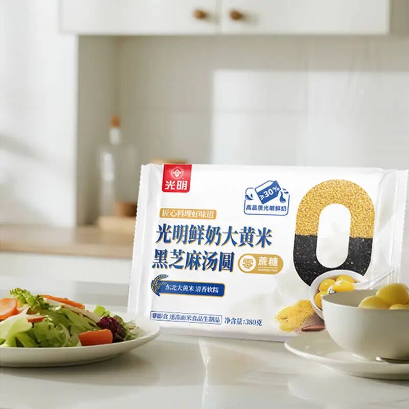 光明鲜奶大黄米黑芝麻汤圆