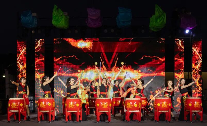 红鼓舞表演热力开场,传统艺韵与滨海风光碰撞,唤醒新年元气。