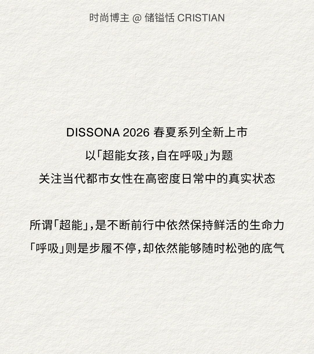 摘要:DISSONA 2026春夏系列发布,轻启自在节奏