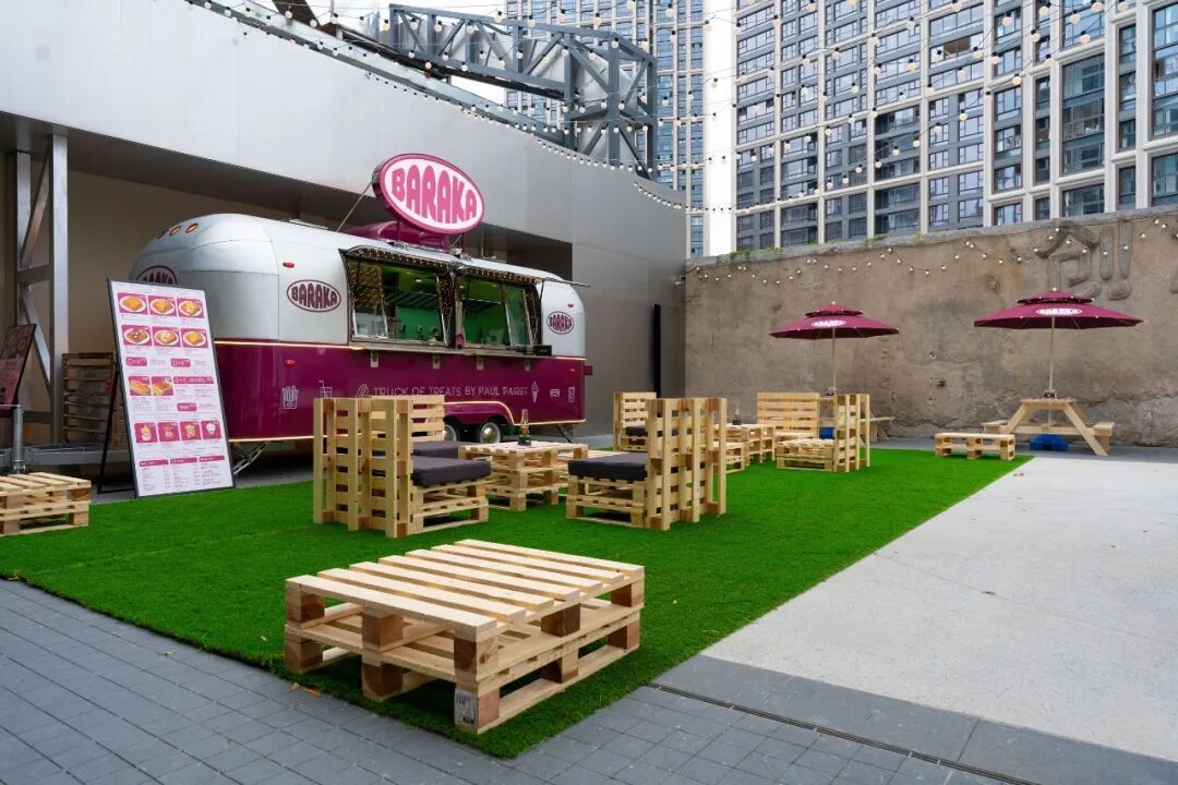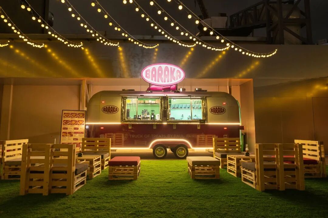 苏州河畔,百空间光二仓库的庭院里,停着一辆特别的餐车。复古摩登的外观、车身简洁的“BARAKA”字样与主厨签名,在工业风的庭院中格外醒目。