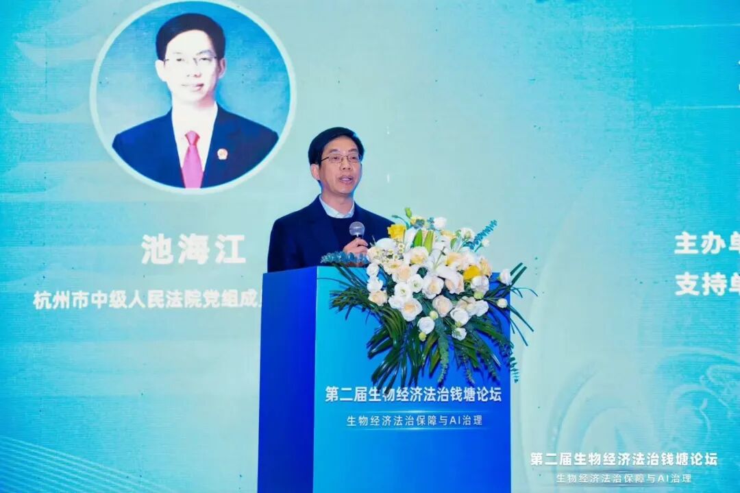 池海江副院长在致辞中表示,杭州是全国首批“生物医药国家高新技术产业基地”之一,浙江生物医药产业“一核两带两圈”的创新策源核,正致力于打造生物医药产业创新高地。杭州中院揭牌运行全国首家以生命科学、生物技术案件为核心业务的生物经济审判庭,受理各类生物经济案件458件,妥善审理AI换脸侵犯个人信息公益诉讼案,涉新冠疫苗检测专利侵权案等一大批在全国具有影响力的司法案件。去年8月,杭州中院生物经济钱塘巡回审判庭、钱塘法院下沙人民法庭建成启用并高水平打造杭州生物经济司法保护案例研究基地,发布了《生物经济十大典型案例》《生物经济企业司法保护指南》《生物经济司法保护大数据分析报告》等系列标志性成果。期待通过本次论坛,推动法学理论与司法实践有机结合,为生物经济的高质量发展,以及为杭州加快建设人工智能创新高地,提供宝贵经验和智力支持。