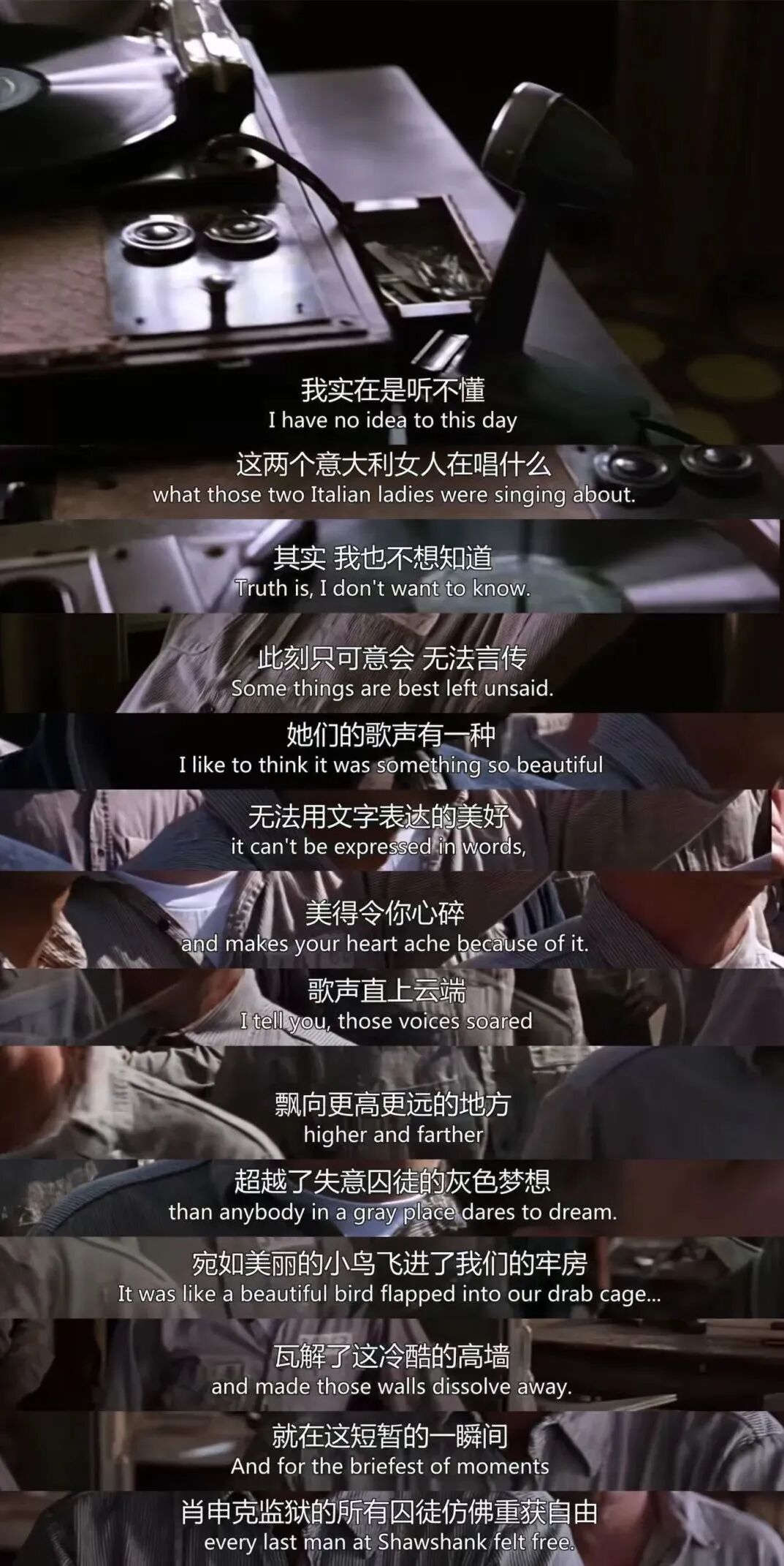 哪怕只有短暂的一瞬间,音乐使肖申克监狱所有囚徒仿佛重获自由。