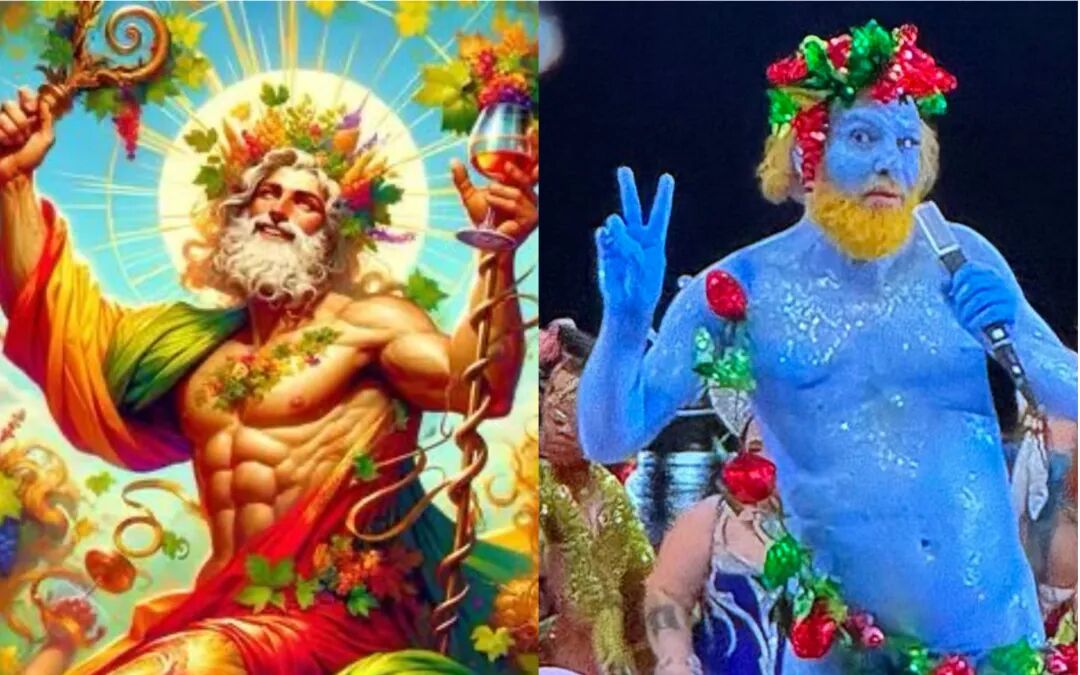 还记得巴黎奥运开幕式上那位全身靛蓝、半裸高歌的“酒神”吗?法国歌手菲利普·凯特林化身古希腊酒神狄俄尼索斯,唱响讽刺社会虚伪的《Nue》:“若全裸而生,枪械何藏?贫富何存?”。这场震撼全球的行为艺术,正是对酒神精神的极致诠释——打破枷锁、纵情释放、拥抱本真。
