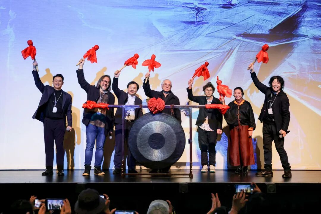 19时的乌镇大剧院内,乌镇戏剧节发起人陈向宏、黄磊、赖声川、孟京辉与中国国家话剧院院长田沁鑫、戏剧大师铃木忠志、克日什托夫·瓦里科夫斯基上台敲响开幕大锣。