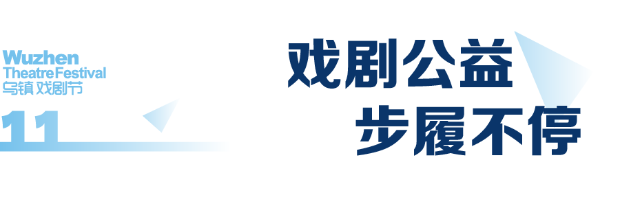 助力公益事业,传递戏剧艺术火种。多年来,乌镇戏剧节数次举办戏剧公益演出。去年在桐乡市人民政府指导下,乌镇戏剧节组委会联合桐乡市慈善总会与谦寻控股,共同发起了公益直播活动,使用公益活动捐赠款项资助偏远地区青少年儿童的戏剧公益教育,对成长期青年艺术创作者及在欠发达地区传播美育的艺术老师提供支持。今年的乌镇戏剧节亦将延续公益直播,携手众多爱心企业,共同弘扬慈善理念,让戏剧的温情穿透时空的界限,向每一颗渴望艺术的心灵散播爱与美好。