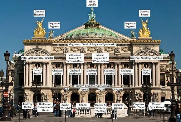 事实上,这些雕像全部都源自于现实中的巴黎歌剧院上的雕像,剧中最显眼的魅影“偷窥”小C和子爵时推出的雕像,实际上讲述的是潘神追求回声女神和松树女神的故事:丑陋但喜爱音乐的牧神潘(Pan)爱上了绪任克斯,疯狂地追求她。绪任克斯逃到父亲的河边,恳求父亲拯救她。潘追到河边,绪任克斯却已经变成了一丛“芦苇”。伤心的潘用芦苇的茎干做成了牧笛,并以绪任克斯的名字为之命名。