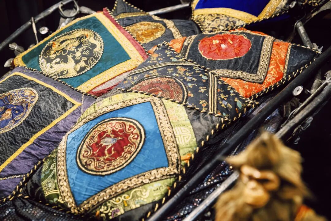 而魅影带着小C驶向地宫的船上,更是细节满满。上面摆满了五颜六色的手工刺绣抱枕,刺绣图案满满的中国元素,与魅影早年喜欢周游世界的生活有关,会带回来不同特色的纪念品。实际上,船的下面是有轮子的,是用遥控器来控制行驶的方向。