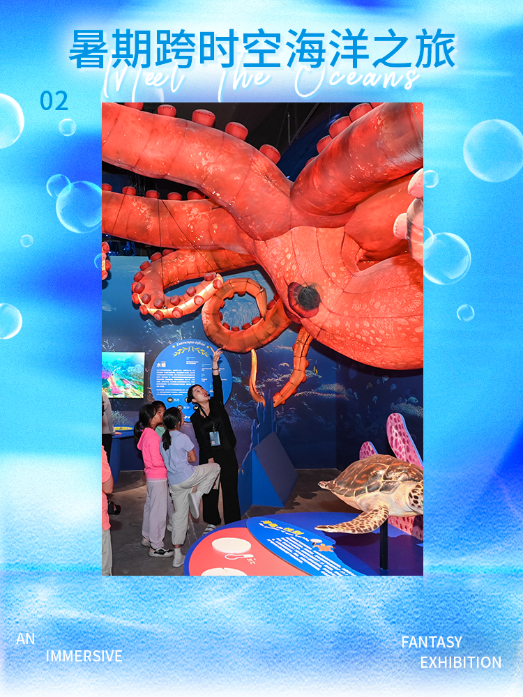 互动体验是展览的另一大亮点。你可以化身海洋造物主:通过选择形态、颜色、生态功能及环境设定,亲手创造独一无二的专属海洋生物。还可以操控呆萌小章鱼躲避鲨鱼追击、帮海马爸爸护送宝宝回家。这些科技互动以不同的海洋生物视⻆,带你穿梭于多样的地理地貌,体验海洋世界的奇妙与挑战。