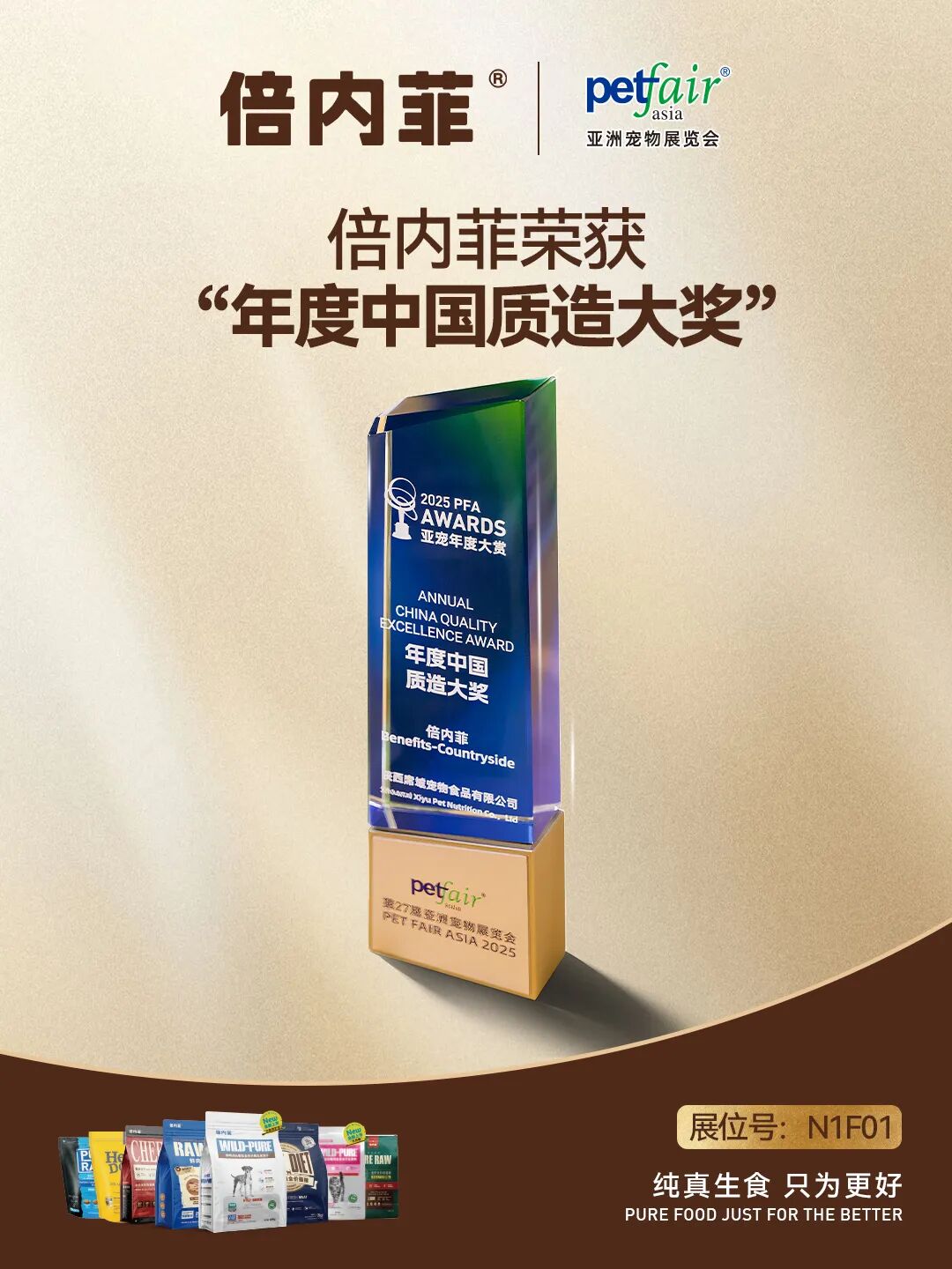 2025年8月22日,倍内菲荣耀斩获亚宠展“年度中国质造大奖”!这份荣誉,不仅是对品牌十年如一日深耕宠物食品领域、坚持创新研发、构建全链路安心体系的权威肯定,更是品牌凭借硬核实力与卓越品质赢得万千宠主信赖和市场广泛认可的有力见证!