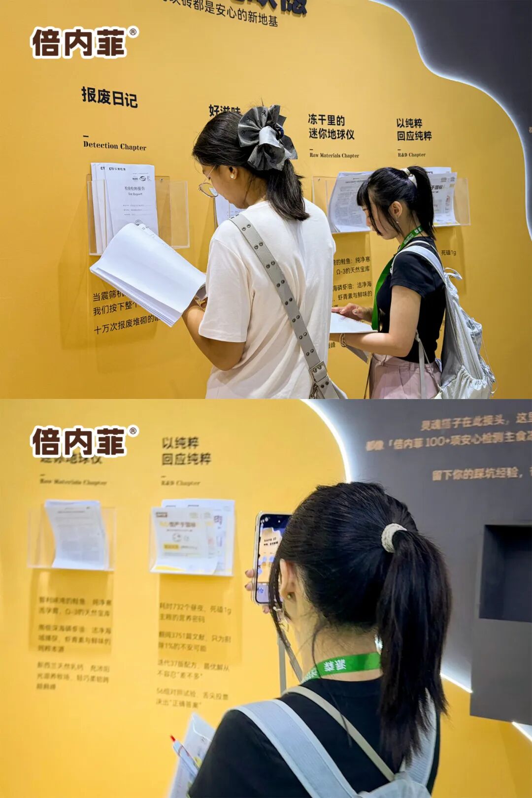 产品品质筑牢“安心”根基,实际体验则让这份安心触手可及——展会现场,品牌特设“养宠烦恼丢丢丢!”及“安心交换局”活动,让来访者和养宠人直观感受倍内菲对“科学配方、精准守护”的追求以及主食冻干100+项检测构筑的安心防线。通过互动,将专业的品控体系,转化为可感知的信任基石。