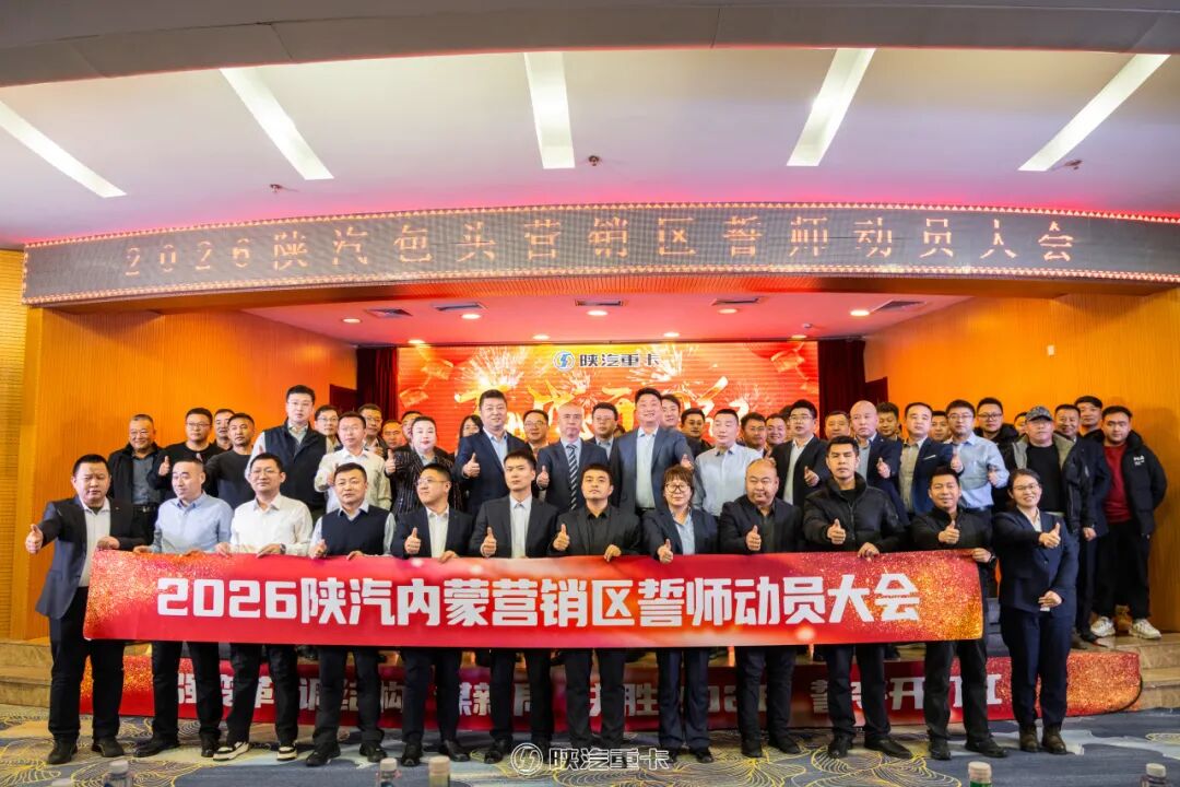 陕汽重卡区域营销誓师动员大会联动启航,以统一战线凝聚产业链与渠道合力,以变革之姿破解发展难题,以实干之力冲刺10万辆目标。2026年,全体陕汽营销铁军必将不负使命、勇毅前行,在市场竞争中乘风破浪,全面冲锋,誓夺首季开门红崭新篇章!