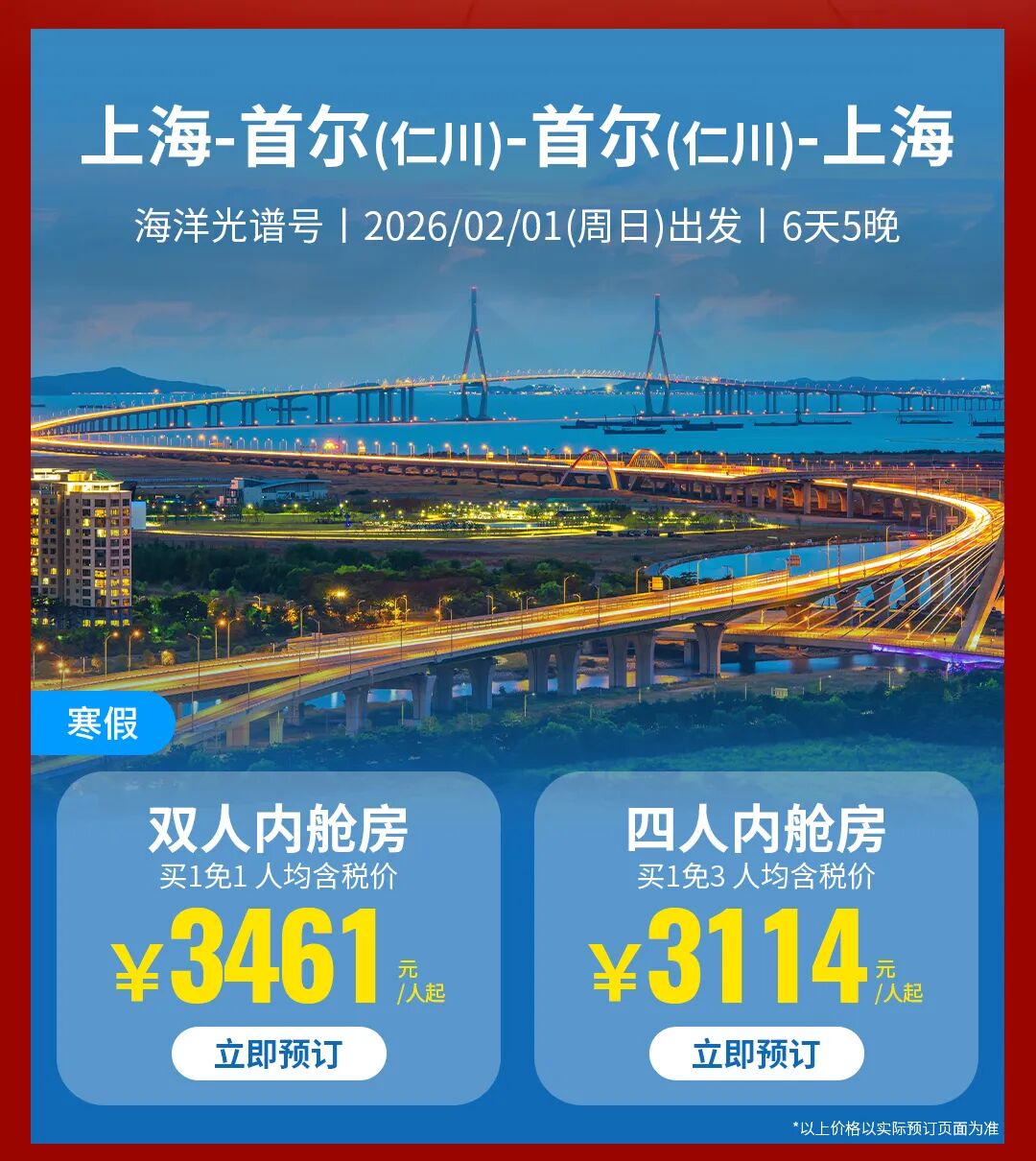摘要:圣诞快乐!星耀双旦,海上狂欢,韩国航线买1免3,低至¥2029/人起玩转海洋光谱号~