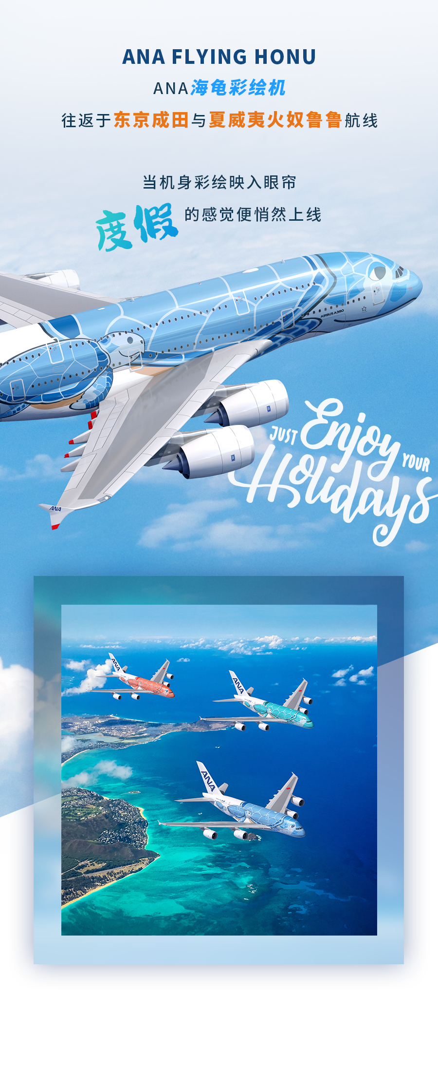 Aloha!「空中海龟」ANA FLYING HONU带您“躺飞”夏威夷