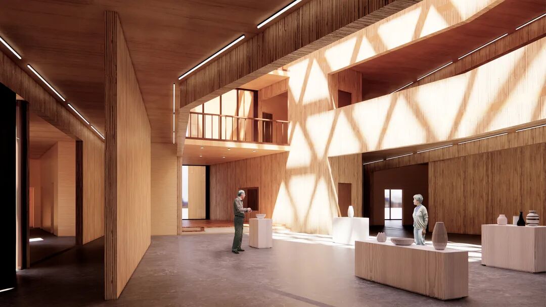 而室内组金奖作品“纸韵东方”将视角从城市更新转向传统工艺的当代处境,选取安徽泾县乌溪村的古法宣纸工坊作为更新对象。与以展示为主的博物馆空间不同,该方案明确将“生产”本身视为空间生成的核心。姜浩然在现场介绍中指出,宣纸的价值不仅存在于成品之中,更存在于完整而复杂的造纸工序,而当代介入往往削弱甚至中断了这一过程的可感知性。