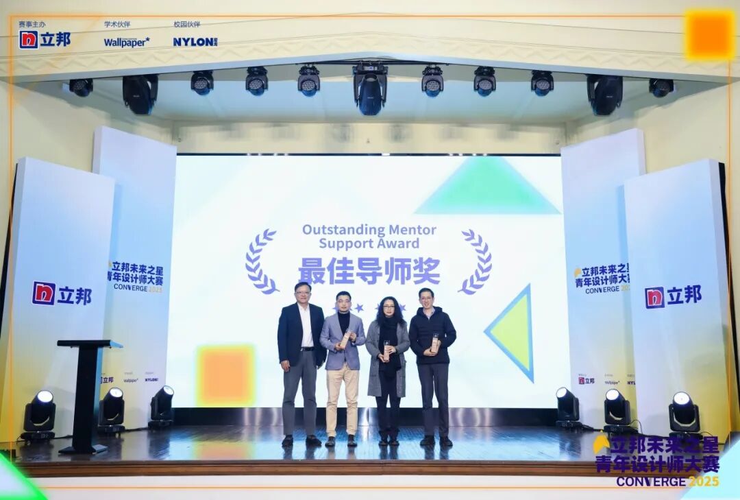 在两大组别金奖揭晓之后,赛事继续颁发了多项特别奖项,以回应设计生态中不同层面的支持与参与。双组“最佳色彩奖”从色彩与材料表达的角度,肯定了青年设计师在空间感知与视觉语言上的探索;“最佳人气奖”则通过公众参与机制,呈现作品在更广泛语境中的传播与共鸣。此外,“最佳院校支持奖”与“最佳导师奖”相继颁发,将关注点从个体创作者延展至其背后的教育体系与教学支持,强调设计人才的成长始终离不开稳定而持续的学术土壤。