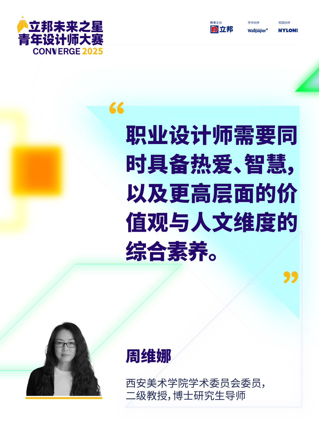 从教育与行业结构的角度出发,西安美术学院教授周维娜指出,当下设计教育正在发生重要转向:从以造型为核心的评价体系,转向以价值判断与过程意识为导向的培养模式。在她看来,学生不应只是被训练为“提交方案的人”,而应具备从问题提出、策略形成到后续运营的系统性理解。她强调,真正支撑设计师长期发展的,并非短期技巧,而是热爱、判断力与价值意识这三种能力的叠加。