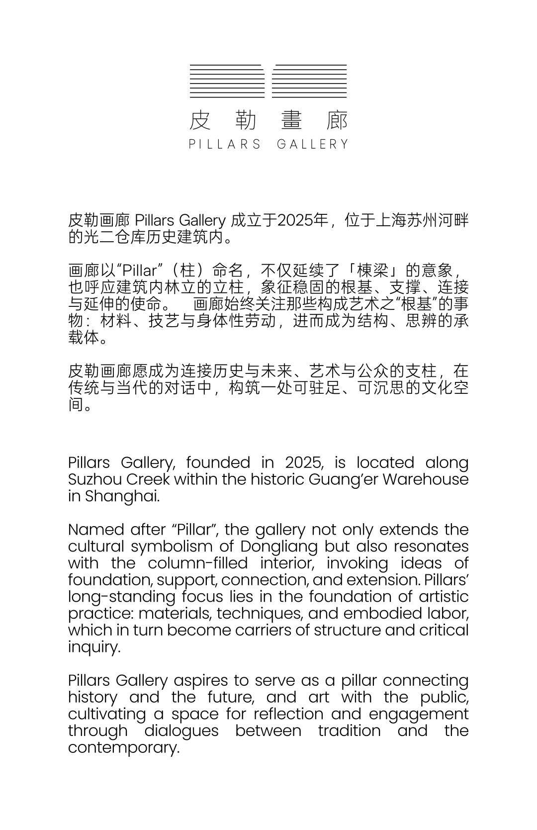 Appointments via hello@pillarsgallery.com. For updates, follow PILLARS GALLERY (Official WeChat).